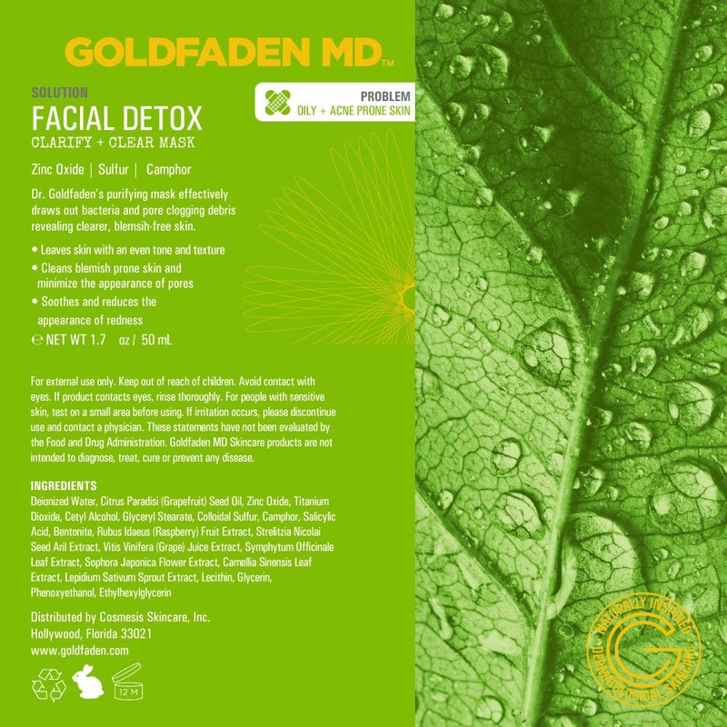 GOLDFADEN MD Facial Detox Mask Clarifying Face Mask w/Zinc Oxide, Sulfur, Salicylic Acid & Grapefruit Purifying Deep Clean Minimizes the Appearance of Redness, Blackheads & Pores 1.7 fl oz