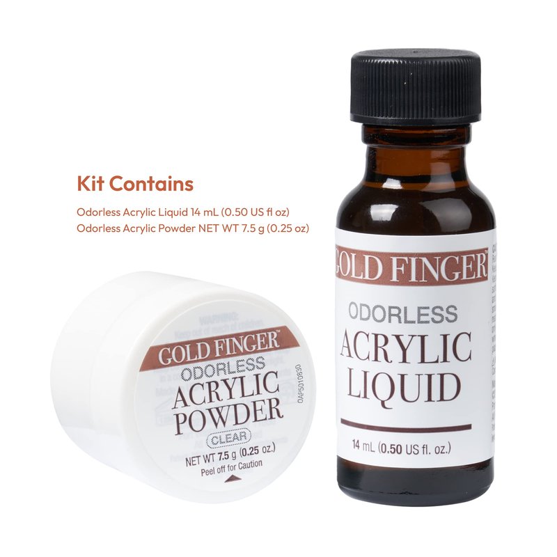 - PRODUCED IN THE UNITED STATES - The Gold Finger Odorless Acrylic system is developed and produced in the United States of America, under the strictest quality control using environmentally-friendly ingredients and formulas.