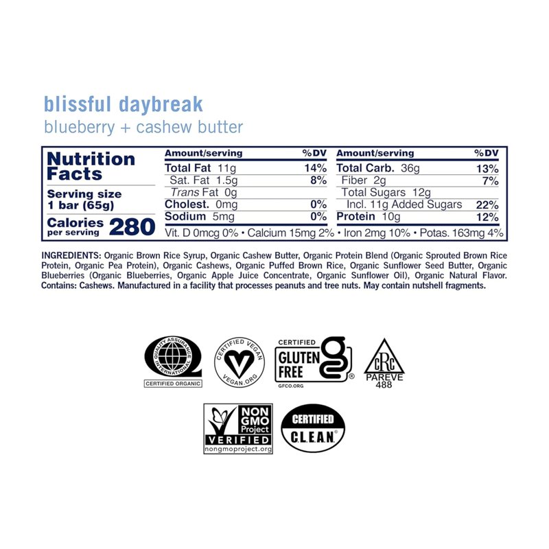 - HEALTHY INDULGENCE: The perfect ratio of real, tangy blueberries, organic cashews, and creamy cashew butter come together with 10g of plant-based protein that will revitalize your spirit all day long.