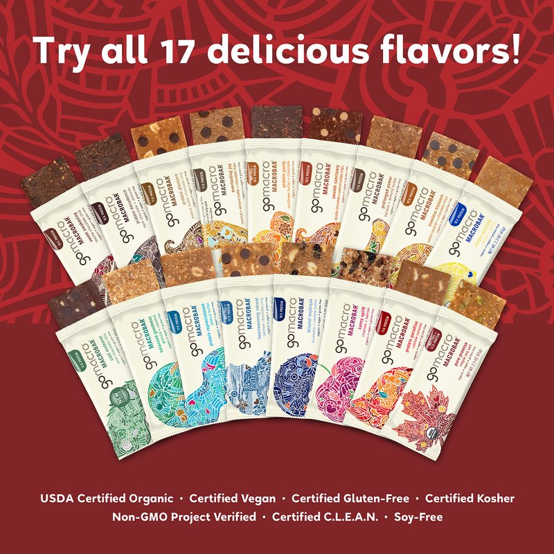 - CERTIFICATIONS YOU CAN TRUST: All GoMacro protein bars are Certified Organic, Vegan, Gluten-Free, Kosher, Non-GMO, C.L.E.A.N., and Soy-Free so you can snack with confidence. If there were a certification for delicious, we’d have that too!