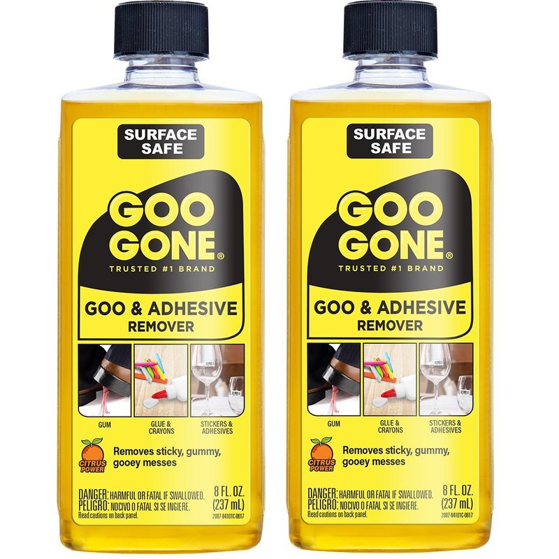 Goo Gone Adhesive Remover - 2 Pack - 8 Ounce - Surface Safe Adhesive Remover Safely Removes Stickers Labels Decals Residue Tape Chewing Gum Grease Tar Crayon Glue