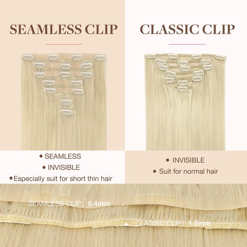 - High-Quality Clips for Quick Wear: Our clip in extensions boast slim, silicone-backed clips for a barely-there feel, securely stitched and cushioned with gentle rubber to safeguard your scalp and hair. The PU design makes the seamless clip in hair extensions more invisible, comfortable, natural, and lighter. They're a breeze to self-apply and remove, perfect for effortlessly transforming your look for any event, from weddings to parties to date nights.