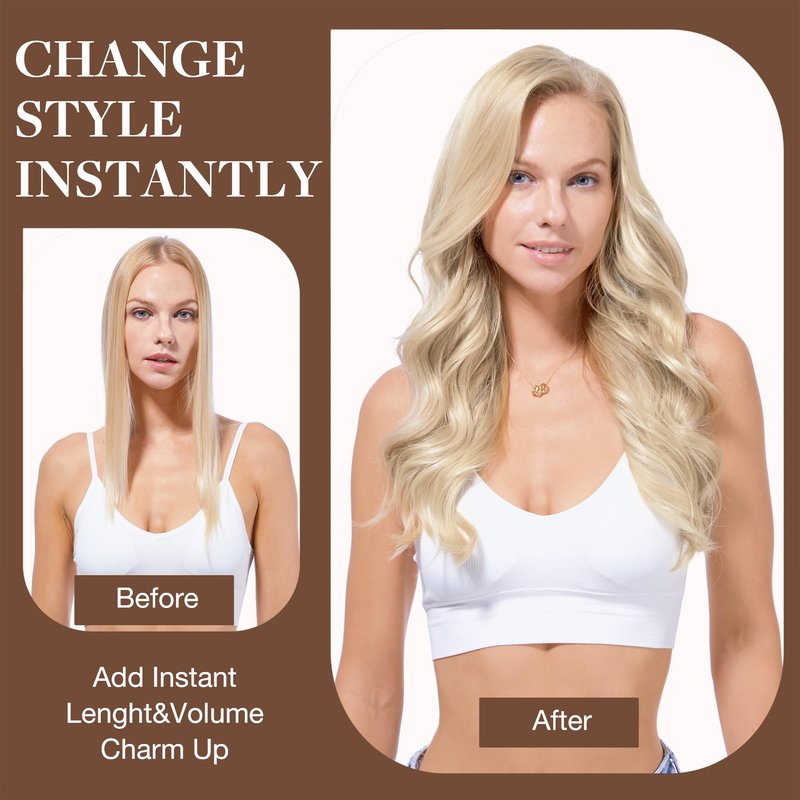- High-Quality Clips for Quick Wear: Our clip in extensions boast slim, silicone-backed clips for a barely-there feel, securely stitched and cushioned with gentle rubber to safeguard your scalp and hair. The PU design makes the seamless clip in hair extensions more invisible, comfortable, natural, and lighter. They're a breeze to self-apply and remove, perfect for effortlessly transforming your look for any event, from weddings to parties to date nights.