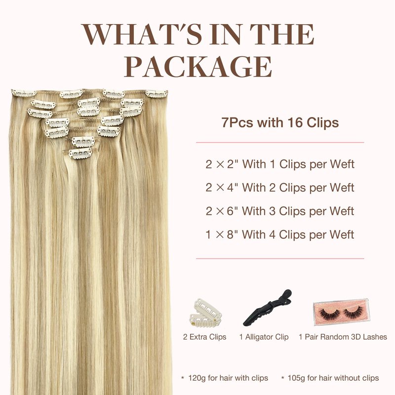 - High-Quality Clips for Quick Wear: Our clip in extensions boast slim, silicone-backed clips for a barely-there feel, securely stitched and cushioned with gentle rubber to safeguard your scalp and hair. The PU design makes the seamless clip in hair extensions more invisible, comfortable, natural, and lighter. They're a breeze to self-apply and remove, perfect for effortlessly transforming your look for any event, from weddings to parties to date nights.