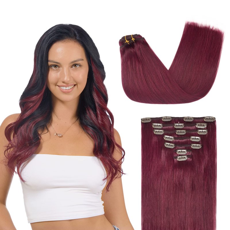 GOO GOO Clip in Hair Extensions Real Human Hair, 18inch 120g 7Pcs, 530 Burgundy, Remy Human Hair Extensions Clip ins for Women, Natural Human Hair