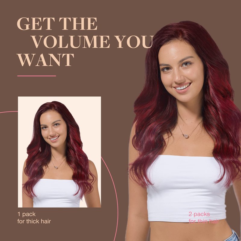 - High-Quality Clips for Quick Wear: Our clip in extensions boast slim, silicone-backed clips for a barely-there feel, securely stitched and cushioned with gentle rubber to safeguard your scalp and hair. The PU design makes the seamless clip in hair extensions more invisible, comfortable, natural, and lighter. They're a breeze to self-apply and remove, perfect for effortlessly transforming your look for any event, from weddings to parties to date nights.