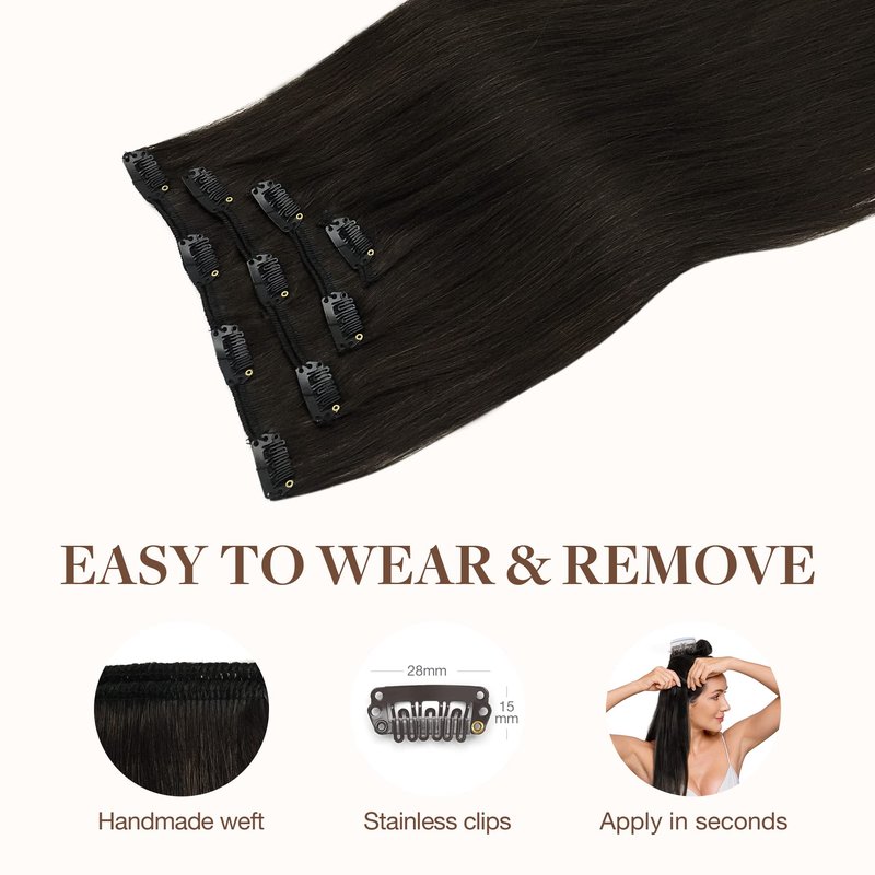 - High-Quality Clips for Quick Wear: Our clip in extensions boast slim, silicone-backed clips for a barely-there feel, securely stitched and cushioned with gentle rubber to safeguard your scalp and hair. The PU design makes the seamless clip in hair extensions more invisible, comfortable, natural, and lighter. They're a breeze to self-apply and remove, perfect for effortlessly transforming your look for any event, from weddings to parties to date nights.