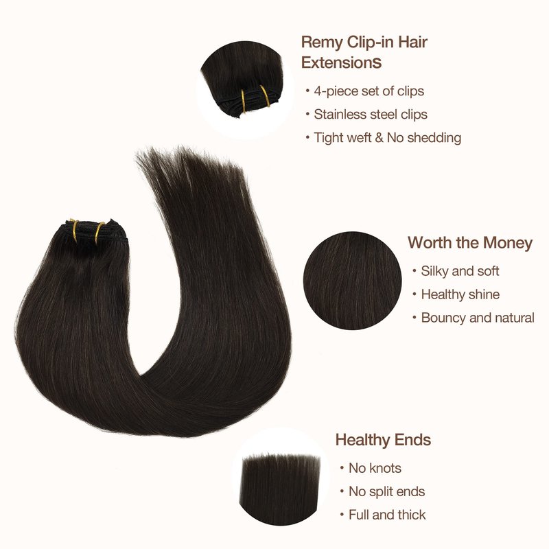 GOO GOO Hair extensions are made of 100% remy human hair. No mix with synthetic hair or animal hair: Scientific research shows leaving any extension in the same place for long period can create stress on the hair and scalp. GOOGOO hair is dedicated to the development of the highest quality hair extensions. Our breakthrough clip hair extensions doesn't have the perils of glue, tape, sewing or other heavier application methods. Damage-free and comfortable.Our team use latest color matching technology to design more fashion collection of premium ombre colored clip in hair extensions for beauty girl/women to choose.Product descriptionHair material: 100% real human hair, can be washed, curled and dyed like your own hair.Hair extensions with clips: 4 pieces set 65g. 55g net weight for hair without clips, 65g for hair with clips. One set for thick hair, two sets for thin hair. Hair sets: 1 x 8" wide weft 4 clips attached, 1 x 6" wide weft 3 clips attached, 1 x 4" wide weft 2 clip attached, 1*2" wide weft with 1 clips.Length: 14-20 inches.Texture: silk straight, can be curly waved.Hair dye and curl: Choose the color similar to your hair, can dyed to matched perfectly. And can be curled to any beautiful hairstyle you want.Warm hair care tips1. Hair color: Real product picture. When you choose color, according your hair root color. Maybe due to lighting effects, monitor's brightness/contrast settings etc, there could be a little slight or dark.2. Hair Dying: it can be treated and styled like your own hair . We do not suggest dyeing the colorful or lighter color . If you also want to do this, please go to the professional salon or contact us before you do this.