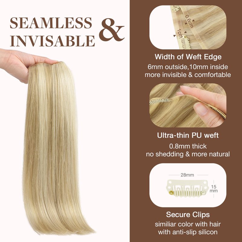 - High-Quality Clips for Quick Wear: Our clip in extensions boast slim, silicone-backed clips for a barely-there feel, securely stitched and cushioned with gentle rubber to safeguard your scalp and hair. The PU design makes the seamless clip in hair extensions more invisible, comfortable, natural, and lighter. They're a breeze to self-apply and remove, perfect for effortlessly transforming your look for any event, from weddings to parties to date nights.