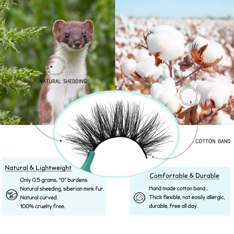 - 4.【Only 0.5g - Light Weight】 -- Each pair of our 3D mink false eyelashes only weighs 0.5 grams. Lightweight "0" burdens, no heavy feeling. You will not even feel their exist on your eyes. Cruelty-free Mink fur. These fine fibers come from the tails of artificial breeding minks' natural falling hair and are sanitized and dyed before they're packaged as easy-to-install eyelashes.