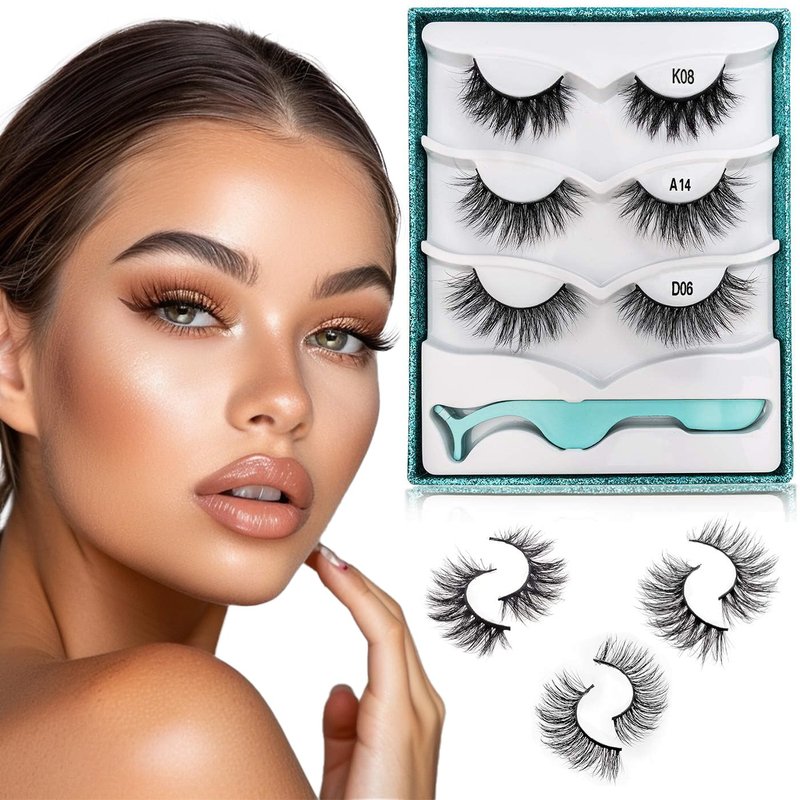 GOO GOO Mink Eyelashes, Daily Type Fake Eyelashes 14mm-18mm 3 Styles Multipack Natural Layered Hand Made Strips Siberian 3D Mink Lashes Real False Eyelashes