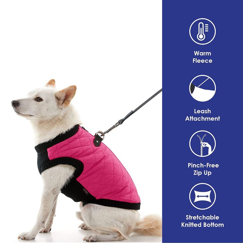Gooby Fashion Vest Dog Jacket - Pink, X-Small - Warm Zip Up Dog Bomber Vest with Dual D Ring Leash - Winter Water Resistant Small Dog Sweater - Dog Clothes for Small Dogs Boy or Medium Dogs
