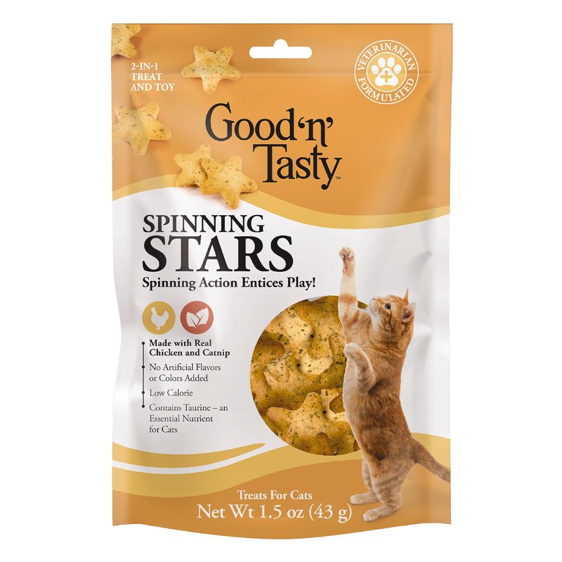 Good ‘n’ Tasty Spinning Stars Cat Treats, 1.5 Ounce Bag, 2-in-1 Treat & Toy Made with Real Chicken, Chicken Liver & Catnip, Encourages Playfulness & Low Calorie