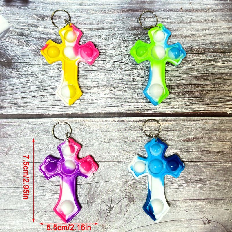 Goodangie00 30 Packs Rainbow Bulk Religion Cross Mini Pop Fidget Keychain Bubble Toy for Kids Classroom Students Prizes Birthday Halloween Party Favors Gifts
