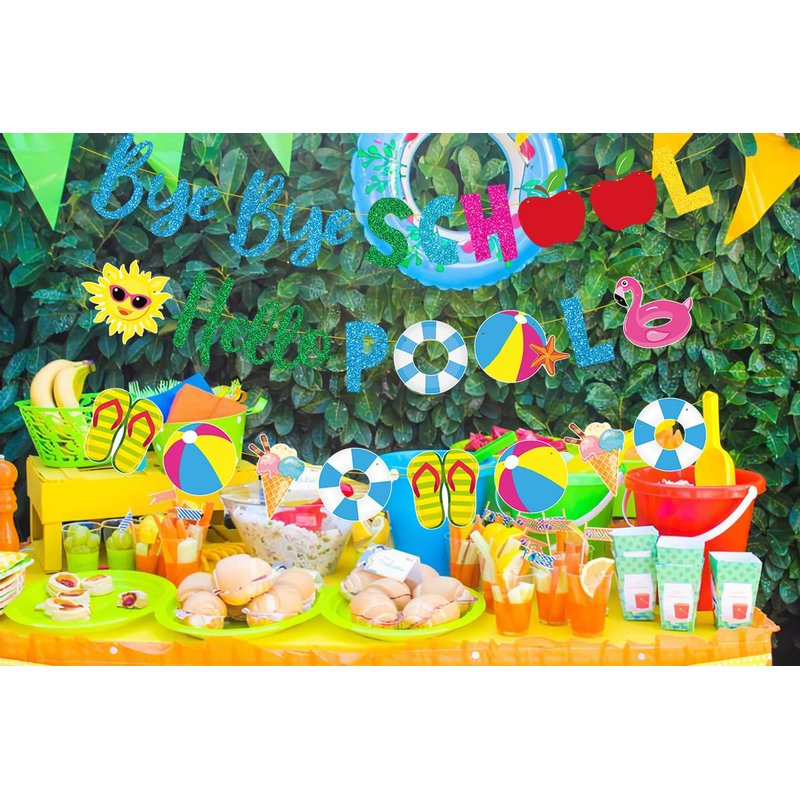 Goodbye School Hello Pool Banner, Bye Bye School Hello Pool Party Decorations, End of School Party Decorations, Last Day of School Party Decorations, Summer Vacation Decorations Garland, Pre-assembled