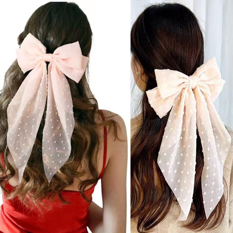 - ✅High Quality Fabric:Hair bows barrettes made from metal french clips and feature decorative polka dot chiffon fabric with long tail, soft and durable, cute bow and long tail.