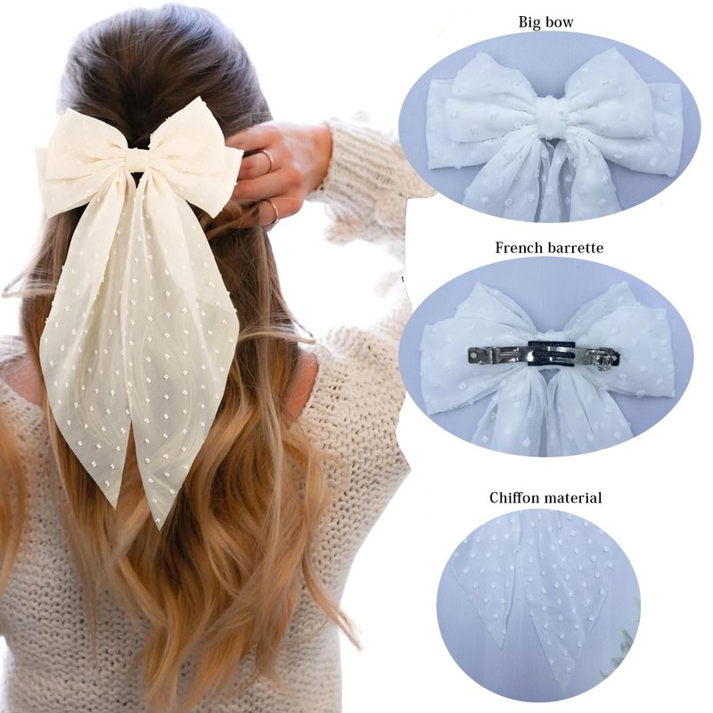 - ✅Big Bow Hair Clips: 7.8*11.8inch big hair clips,nice and strong,it will make your back look more beautiful, can enhance your overall temperament, emitting a unique female charm.