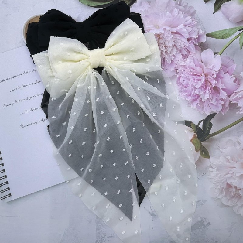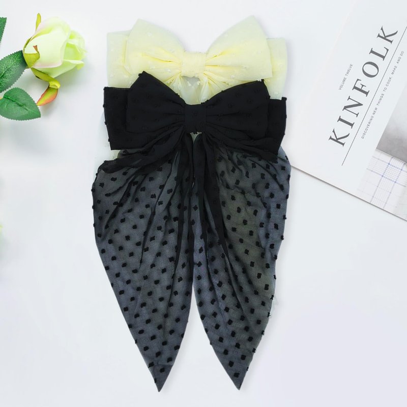 - ✅High Quality Fabric:Hair bows barrettes made from metal french clips and feature decorative polka dot chiffon fabric with long tail, soft and durable, cute bow and long tail.