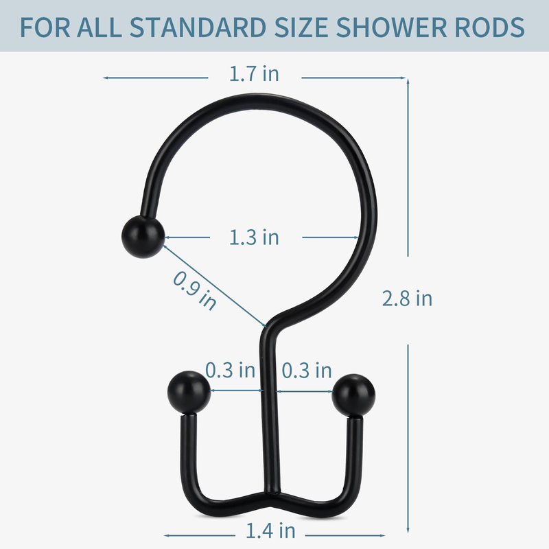 - [DOUBLE HOOKS DESIGN]: The double shower curtain hooks with humanized open double opening design, very easy to install or remove shower curtains and shower liners, suitable for all standard size shower curtain rods.