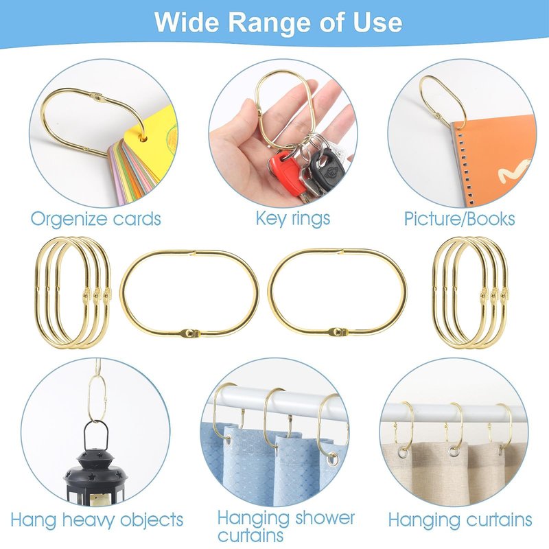 - [WIDE APPLICATION]: The simple, attractive and snap-on design gives the gold shower curtain rings many possibilities, not only for shower curtains, but also for curtains, DIY loose-leaf, organizing tools, key rings, scrapbooks and more.