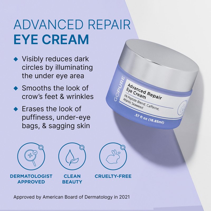 goPure Advanced Repair Eye Cream - Under Eye Cream for Puffiness, Bags, and Dark Circles, Visibly Improve the Look of Fine Lines, Wrinkles, and Crows Feet - 0.57 fl oz