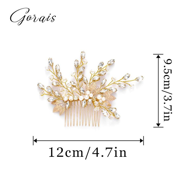 Gorais Gold Leaf Wedding Hair Comb Brides Hair Pieces Crystal Rhinestone Bridal Hair Accessories for Women and Girls