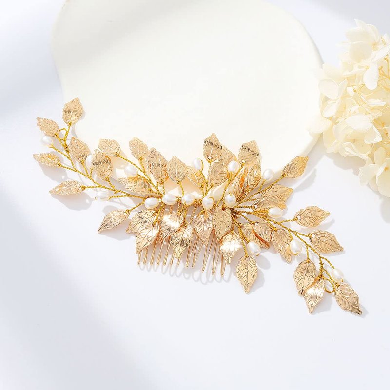 - Wedding hair accessory is made of alloy wire,gold leaf and pearl.You will surely get a ton of compliment!!!