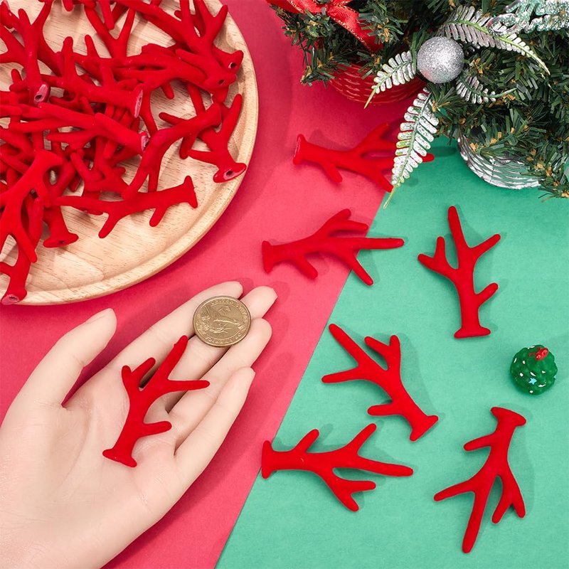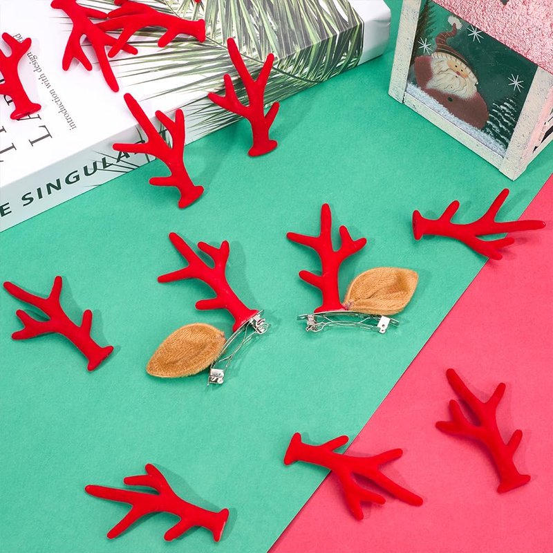 GORGECRAFT 20 Pairs Red Christmas Deer Mini Antlers Embellishments Flocking Deer Antlers Hair Clips Accessories Reindeer Elk Branch Animals Horn Snowman Hand for Headband Snowman Party Ornaments