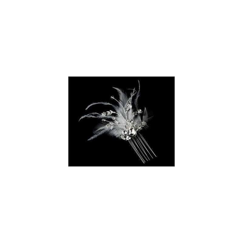 - Gorgeous White Feather Bridal Hair Comb Fascinator features exquisite rhinestone cut shape clusters and flowers, with subtle Swarovski Crystal spray accents