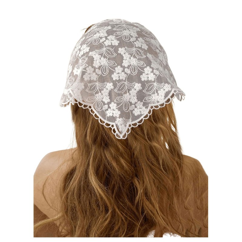 - Lace head scarf, floral embroidered accessories, white bandanas for women