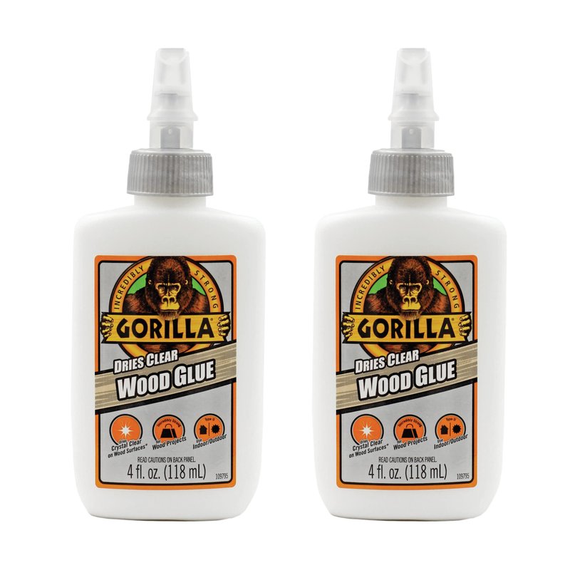 Gorilla Dries Clear Wood Glue, 4oz Bottle (Pack of 2)