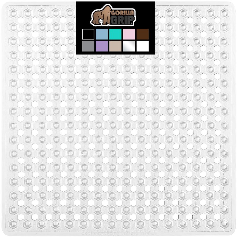 Gorilla Grip Patented Shower and Bathtub Mat, 21x21, Small Square Shower Stall Floor Mats with Suction Cups and Drainage Holes, Machine Washable and Soft on Feet, Bathroom Accessories, Clear