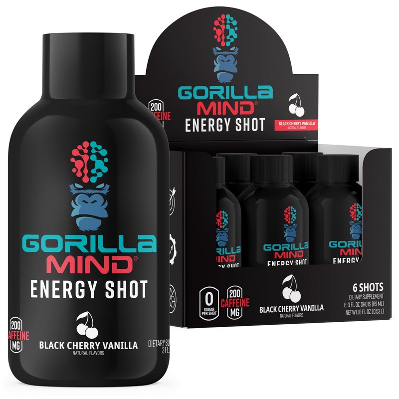 Gorilla Mode Energy Shots (6-Pack) - Energy Shots for Enhanced Focus & Energy, Sugar-Free, Fast-Acting, Potent Formula with Vitamins & Natural Extracts (Black Cherry Vanilla)