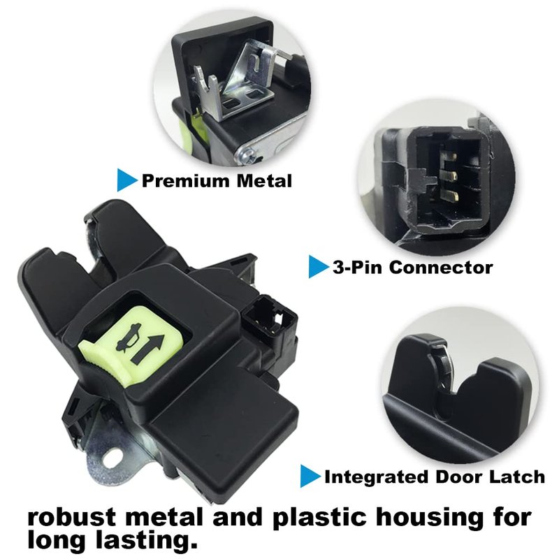 - High quality: trunk latch assembly has an inside tailgate motor. 3-Pin connector for more proper installation. Rugged plastic housing and durable metal material make the actuator latch long life and corrosion resistant.