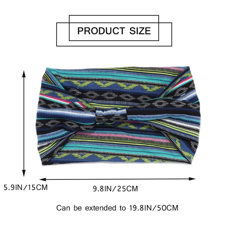 - Headbands for women is about 9.4in/24cm*5.5in/14cm, are elastic, stretches well when pulled so it doesn't feel too tight on your head, it can also easily adjusted to suit your specific needs for its elastic.