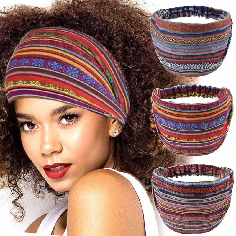 GORTIN Extra Wide Headbands Stretch Boho Head Wrap Turban Hair Bands Elastic Head Bands Cloth Hair Accessories for Women and Girls Pack of 3