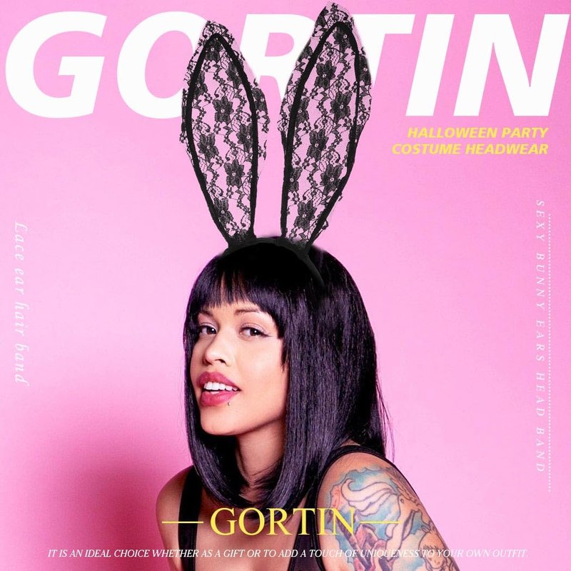 GORTIN Lace Bunny Ears Headband Black Sexy Bunny Hair Band Rabbit Ears Headpiece Halloween Masquerade Costume Hair Accessory for Women