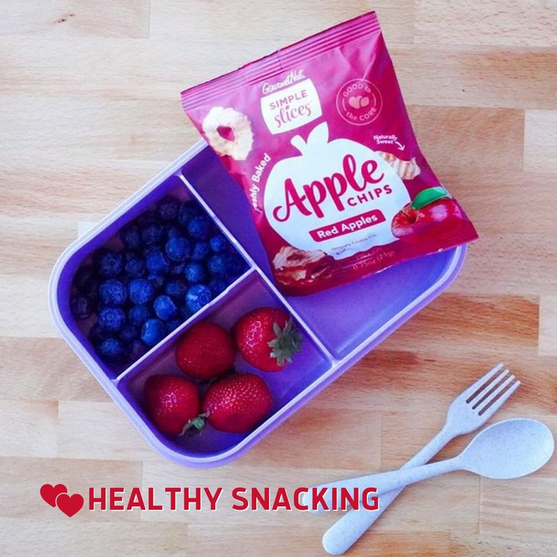 - An Apple A Day - Our fresh apple chips are the perfect snack, wherever you are! Whether you're on the move or just hanging out at home, make Simple Slices a part of your everyday. These chips are healthy snacks for adults and kids, and everyone else in between, this snack can be enjoyed straight out of the bag, topped on salad or yogurt, or even added to your favorite trail mix. Add it to your snack pack back to school shopping list.