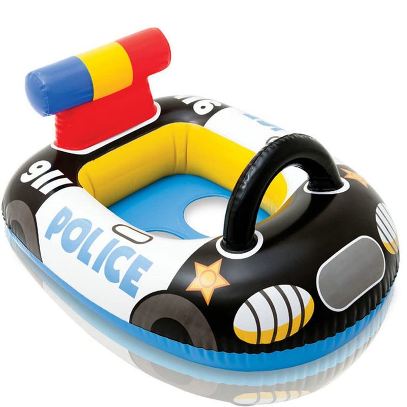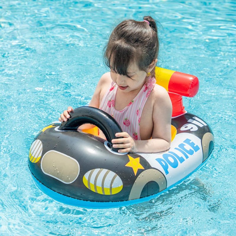- 🚔COOL CARTOON POLICE CAR POOL FLOATIE: Fashion and conspicuous cartoon police car pool swim float would be baby boy's baby girl's love, this police car cartoon float maybe will let babys toddlers and kids excited on water party fun. a water raft lounge toy would fully stimulate the children to play water fun, they are fall in love with water fun from that moment.