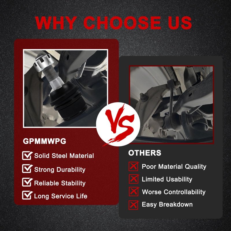 - Various Fuctions: GPMMWPG Suspension Ball Joint Kit will eliminate clunking noises, reduce body roll, improve handling and ensure safety, thus bringing you a better driving experience