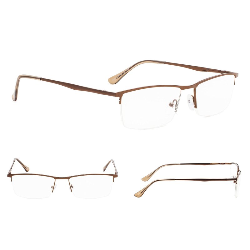 Gr8Sight Half-Rim Reading Glasses 3-Pack with Spring Hinges Brown
