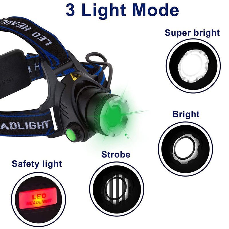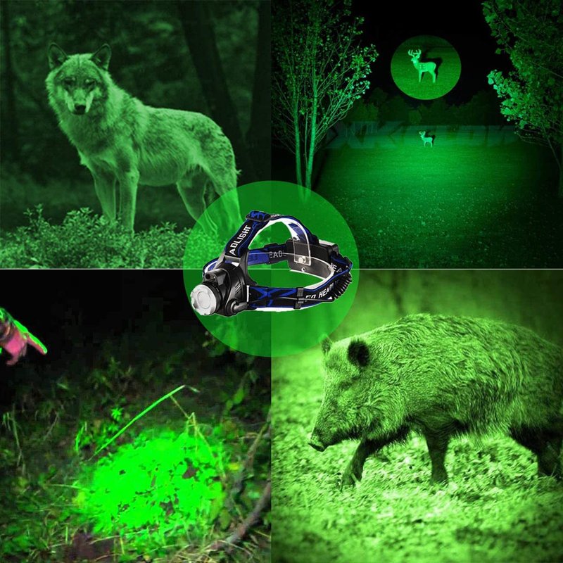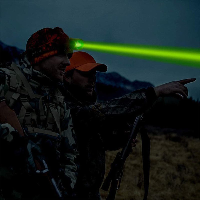 - 【Greenlight Headlamp】Hunting led headlight frees your hands and Greenlight allows you to get more prey. Green Headlamp for running, walking, fishing, hunting, hiking, cycling, reading, caving, auto repair & emergency kit or DIY as a waist lamp, Helmet Light, bike headlight.