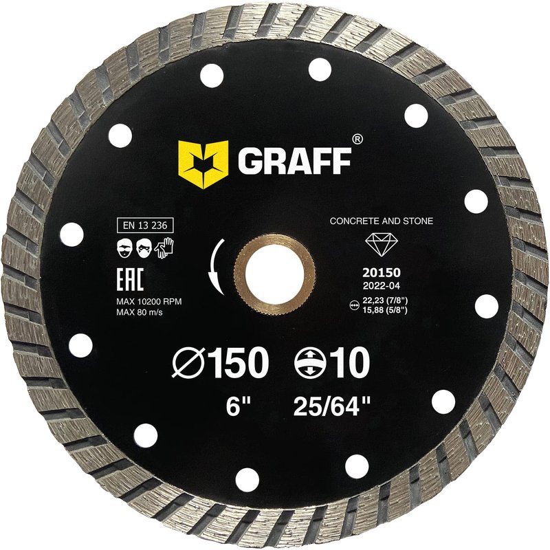 - UNIVERSAL: Diamond blade for angle grinder is designed for domestic use and DIY. GRAFF turbo cutting disc is intended for working with concrete, artificial stone, paving flag and kerb.