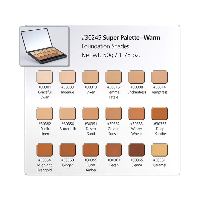 - MULTIUSE PALETTE: Our makeup palette for warm undertones can be used as a foundation, corrector, and contouring palette. Its intensive color variation complements all yellow and golden skin tones. This foundation palette kit is an excellent choice for anyone who wants to create various makeup looks.