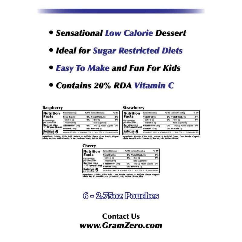 GramZero Berry Variety (Raspberry, Strawberry, Cherry) Sugar Free Gelatin Mix 6-Pack, Low Carb Dessert, Stevia Sweetened