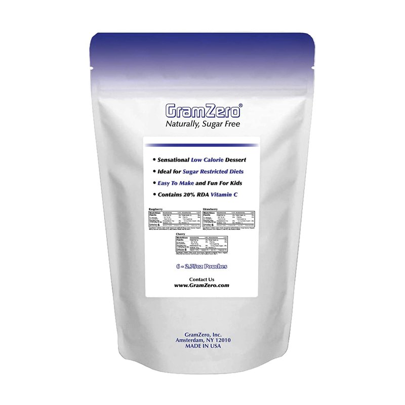 - Master Pouch Contains 6 Sugar Free Gelatin Mix Inner Pouches - 2 of Each Flavor: Cherry, Raspberry and Strawberry, 2.75 Ounces Each; 1 Pouch Makes Approximately 32 - 4 Ounce Servings; Total Package Weight 16.5 Ounces/1.03 Pounds; Total Servings 192 as 4 Ounce Prepared Sugar Free Gelatin Low Carb Dessert