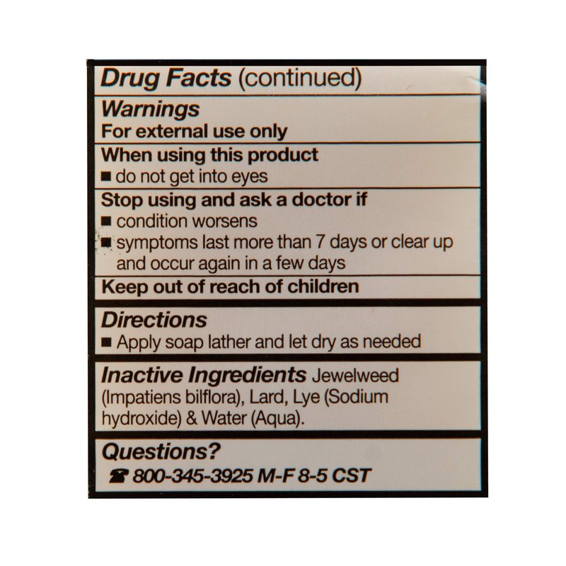 - Jewelweed Extract: Enriched with jewelweed extract, known for its traditional use in alleviating the effects of poison ivy, this soap bar helps neutralize the irritants and promotes healing.