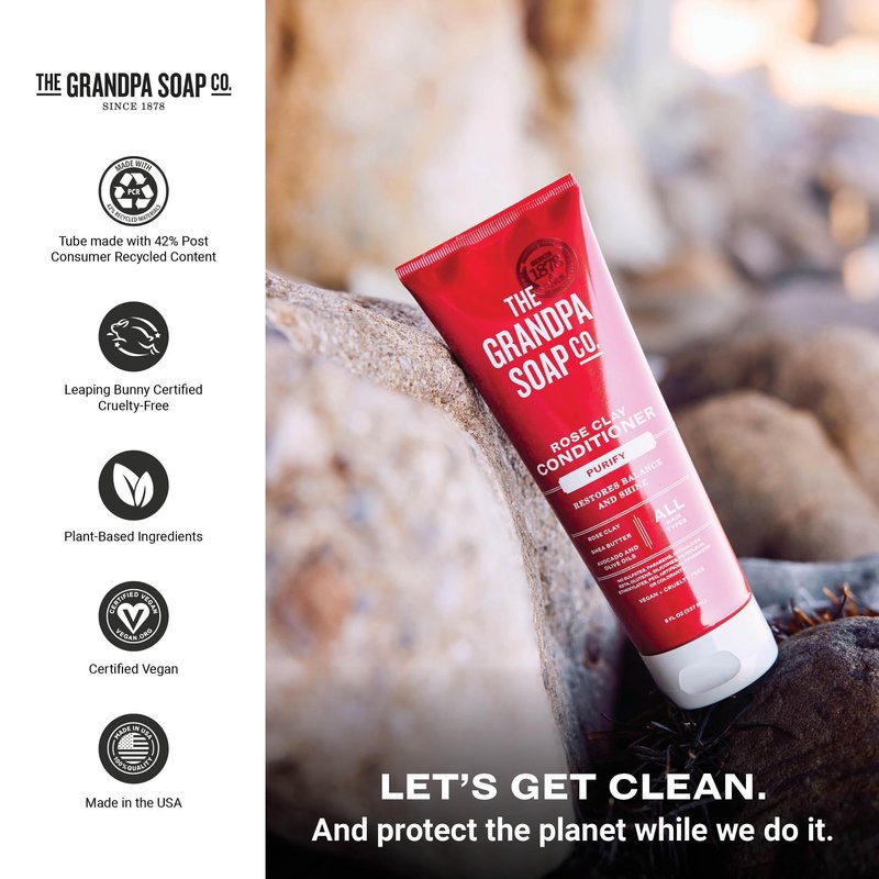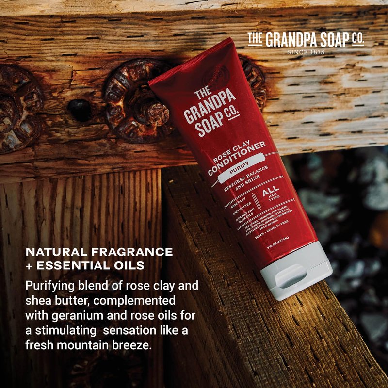 Grandpa's The Soap Company Purifying Rose Clay Conditioner - Lift Impurities While Nourishing Hair, With Rose Clay, Shea Butter & Avocado Oil, Vegan, Sulfates and Parabens Free, 8 Fl Oz