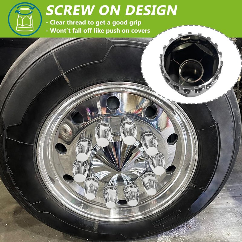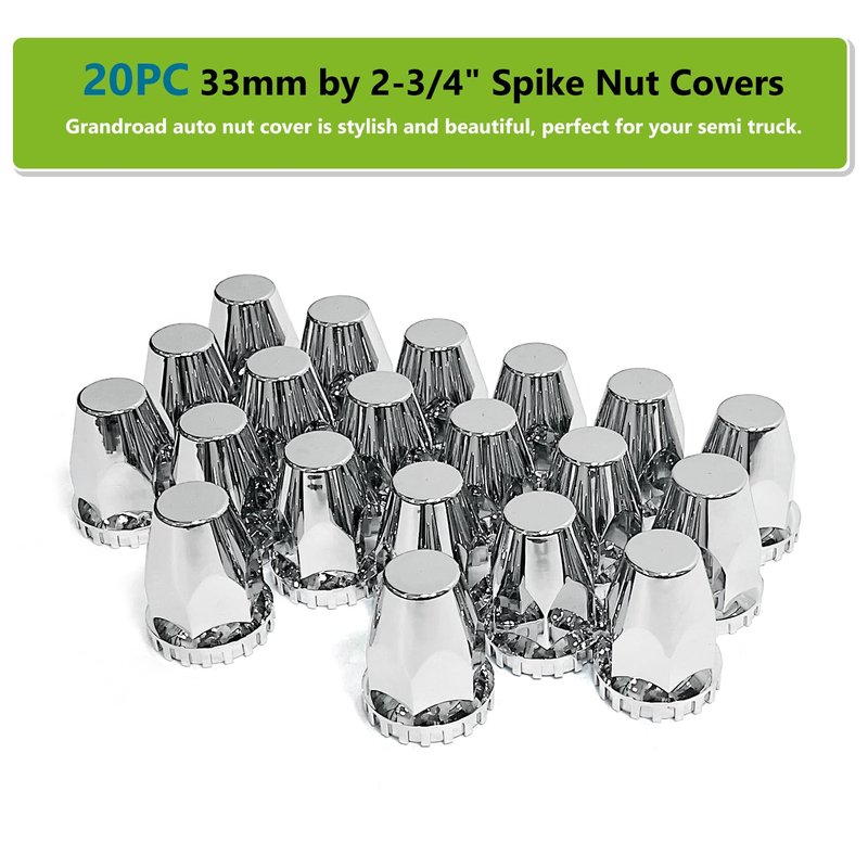 - 【FITMENT】: 20 packs 33mm by 2-3/4 inch height screw-on nut covers fit For Semi Trucks, for Most Trucks, Trailers, and Vehicles with 33mm flange lug nuts. Please measure and check the dimensions of your truck's wheel nuts before purchasing.