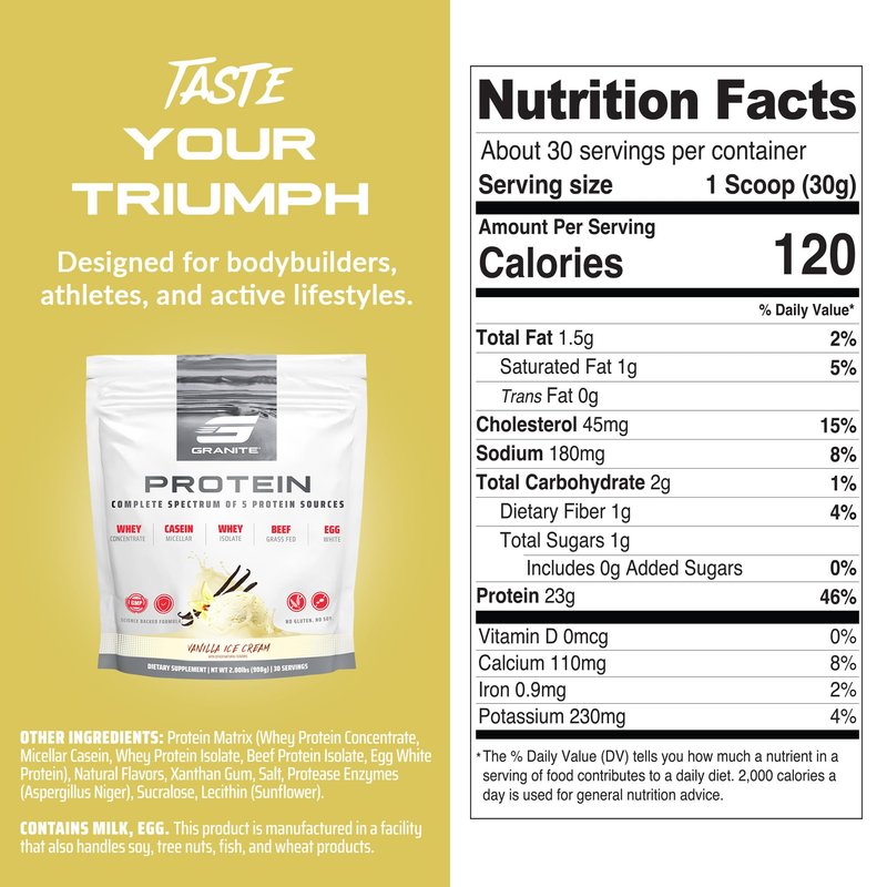 Granite Protein Powder | Whey Isolate & Concentrate| Casein for Lean Muscle Building & Workout Recovery | 30 Servings | Egg & Grass Fed Protein | 23g Protein from 5 Sources | Vanilla Flavor